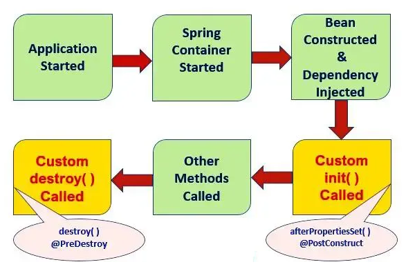 }- 의존 관계가 주입되고 빈이 소멸되기 전에 각각