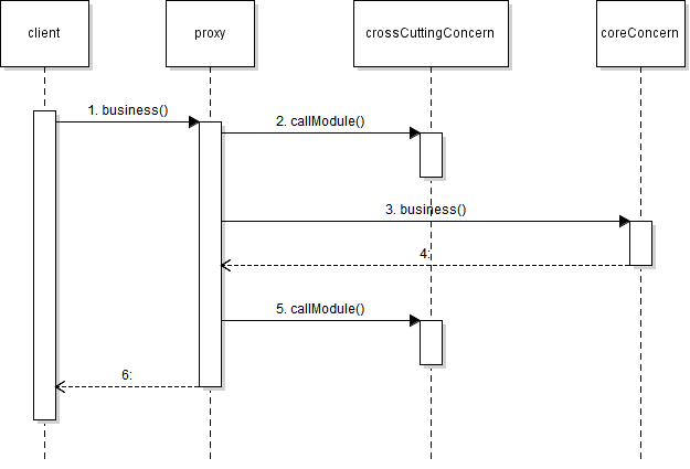 - 핵심 기능의 실행은 다른 객체에 위임하고 부가적인 기능을 제공하는 객체